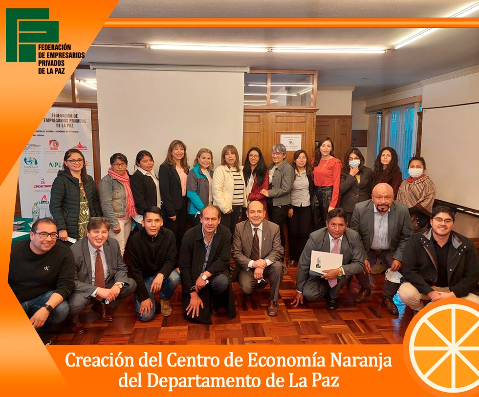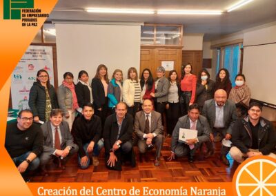 que la FEPLP, tiene el fin de asegurar los objetivos y propósitos mencionados, es por eso que se aprobó un acta de creación que fue firmada, en señal de conformidad y aprobación, por todos los asistentes por unanimidad, además, subrayó que Santa Cruz, Cochabamba, Potosí, Tarija y Chuquisaca, ya cuentan con sus Centros Departamentales de Economía Naranja y dijo que La Paz no puede quedar fuera de este proyecto.